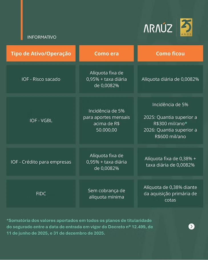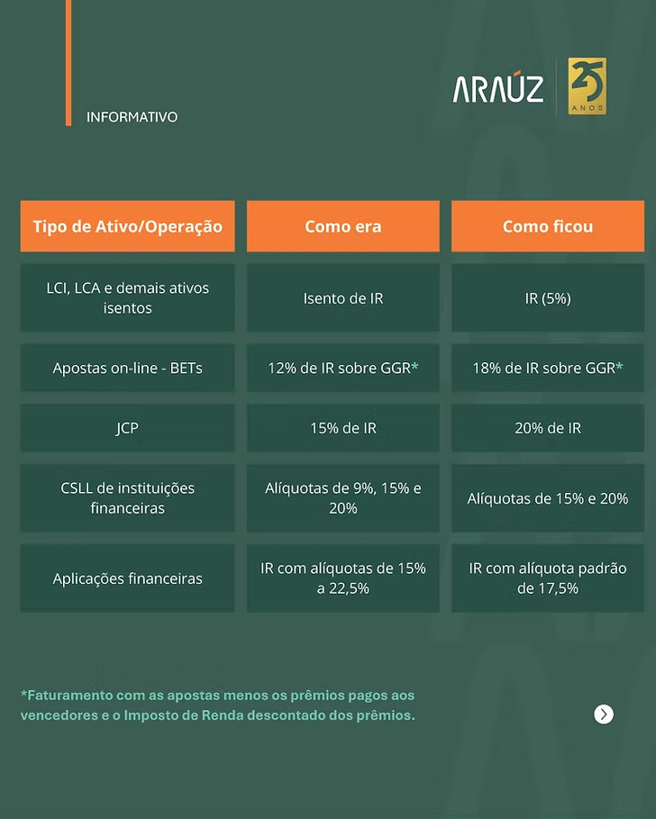- Tributação de ativos antes isentos de IR, como LCI e LCA;